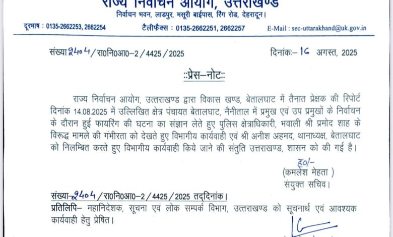 Read More »बड़ी खबर। भवाली सीओ प्रमोद शाह सहित थाना अध्यक्ष के खिलाफ चुनाव आयोग ने की बड़ी कार्रवाई, बेतालघाट में चुनाव…